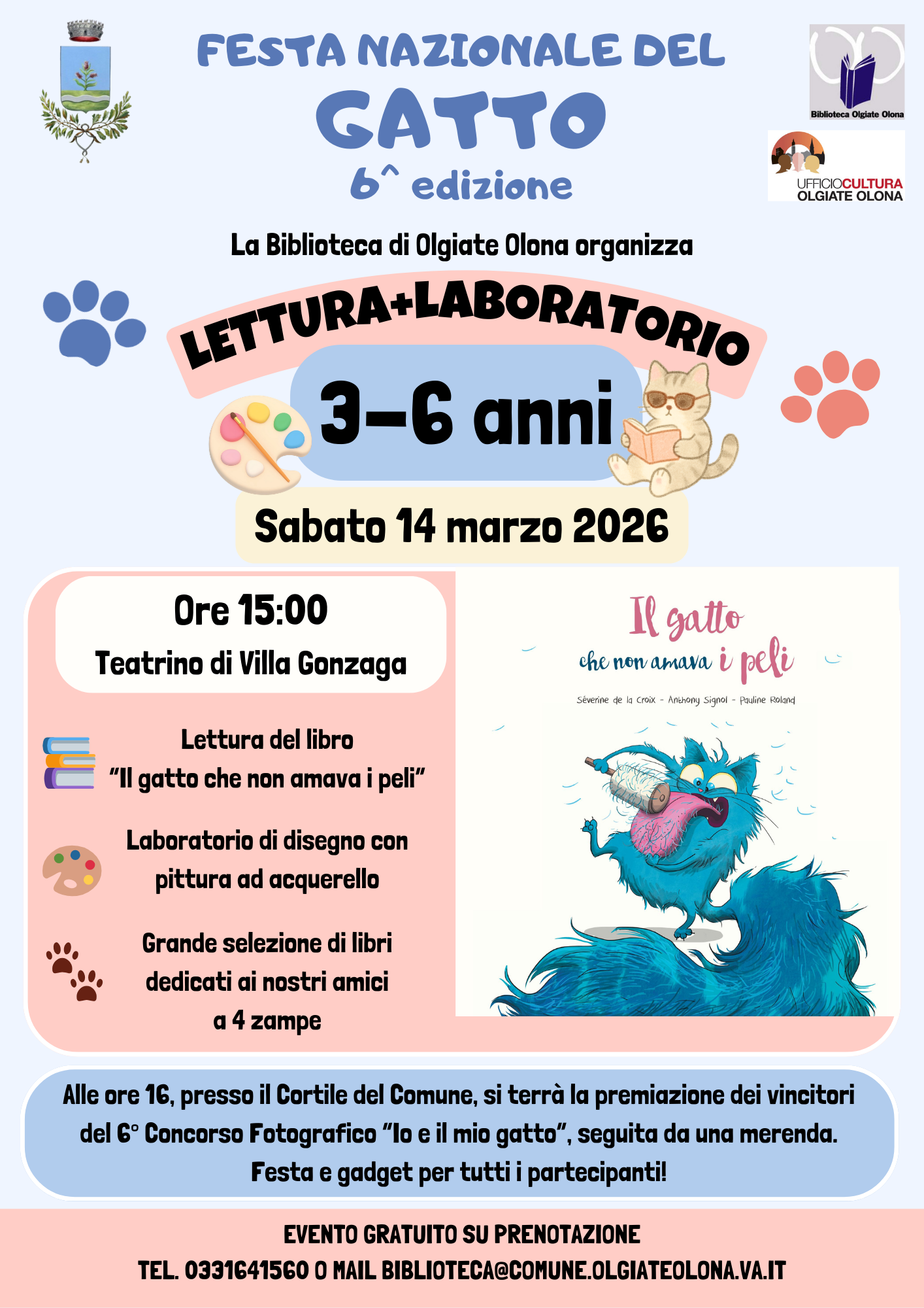 Alle ore 16:00, presso il Cortile del Comune, si svolgerà la premiazione dei vincitori della 6ª edizione del Concorso Fotografico “Io e il mio gatto”, seguita da una merenda conviviale.
