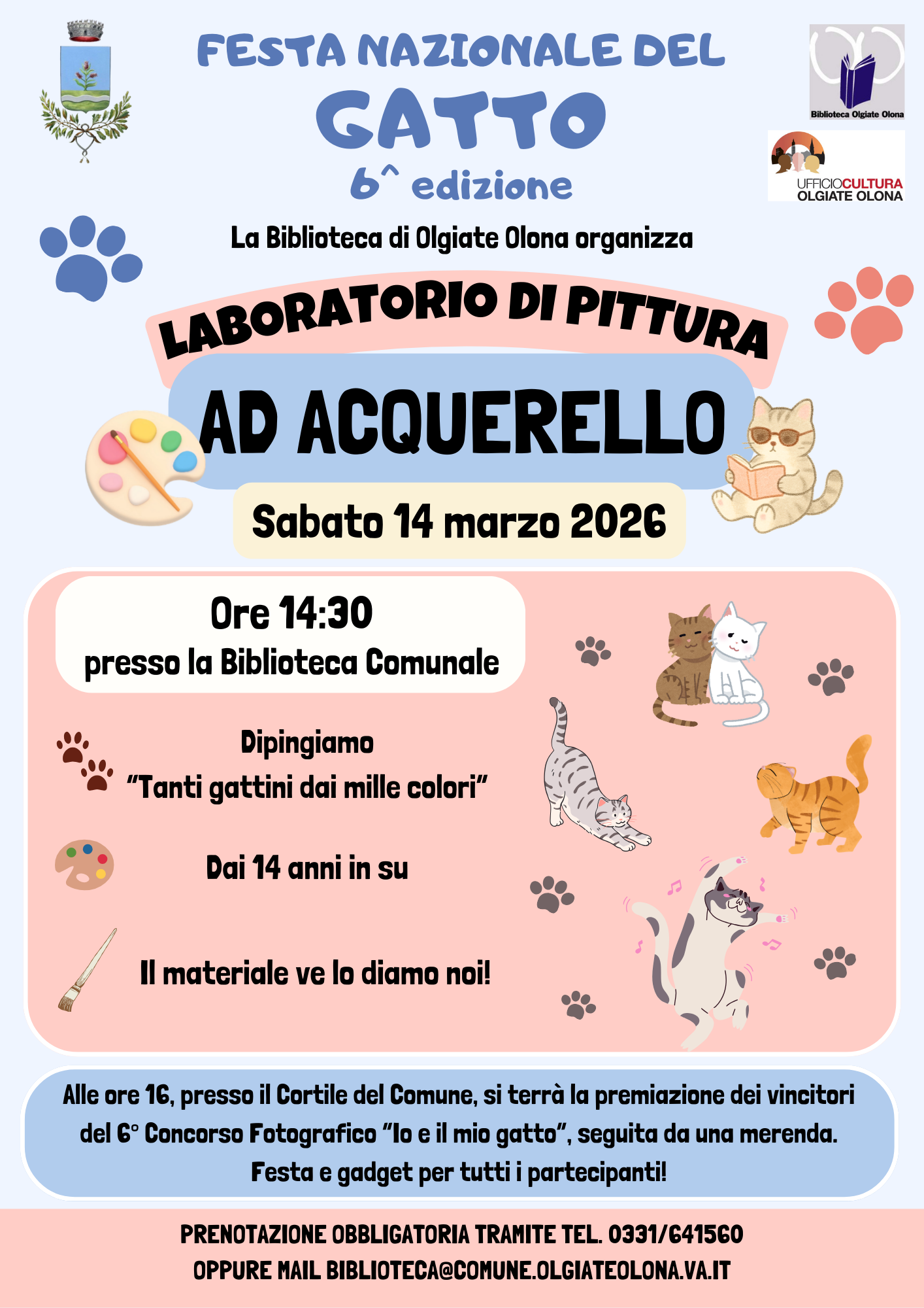Alle ore 16:00, presso il Cortile del Comune, si svolgerà la premiazione dei vincitori della 6ª edizione del Concorso Fotografico “Io e il mio gatto”, seguita da una merenda conviviale.