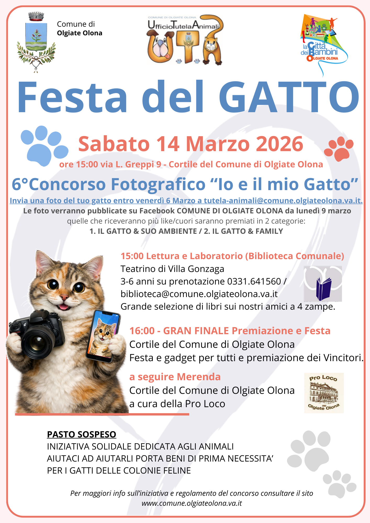 ⚠️ Il regolamento e il modulo di partecipazione al concorso fotografico "IO E IL MIO GATTO 2026" sono consultabili tra gli allegati in questa pagina.